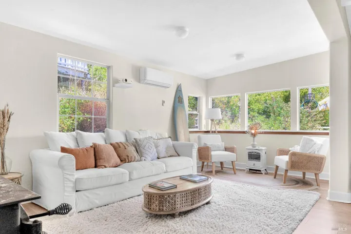 +"PublicRemarks": "Views! Perched above where the Russian River meets the Pacific Ocean, this coastal retreat offers a rare opportunity to own in one of Sonoma County's most desired getaway destinations. Minutes to Goat Rock Beach and steps to town, the location is ideal for both weekend escapes and short-term rental potential. Nearly a century old and thoughtfully improved, the home blends timeless character with modern comfort. Picture windows frame sweeping water views, a cozy wood stove and new mini-splits provide year-round comfort, and two spacious bedrooms and two full baths include a clawfoot tub perfect for slow mornings after beach walks. The kitchen features vintage-style appliances with classic charm. Relax on the view deck as sunsets light up the coastline. Enjoy coffee in town, stroll along the river, or head out on iconic coastal hikes and wine-country day trips. Whether you're seeking a full-time residence, a weekend retreat, or an STR-friendly investment, this home delivers the magic of California coastal living at the water's edge a truly rare find."